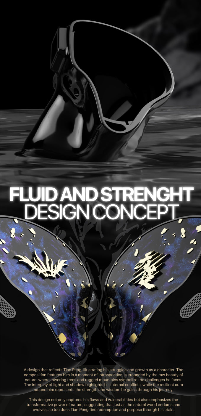 This design reflects the struggle and growth of the character Tianpeng. The composition shows his moment of self-reflection, surrounded by the beauty of primitive nature, and the towering trees and rugged mountains symbolize the challenges he faces. The interweaving of light and shadow highlights his inner conflict, while the tough aura around him represents the strength and wisdom he has gained through the journey. The design not only captures his shortcomings and softness, but also deepens the process of transformation-just as nature has experienced vicissitudes while keeping pace with the times, Tianpeng also finds redemption and goals in various tests.