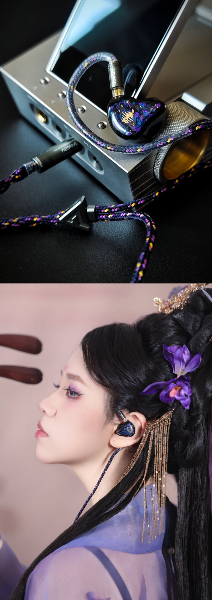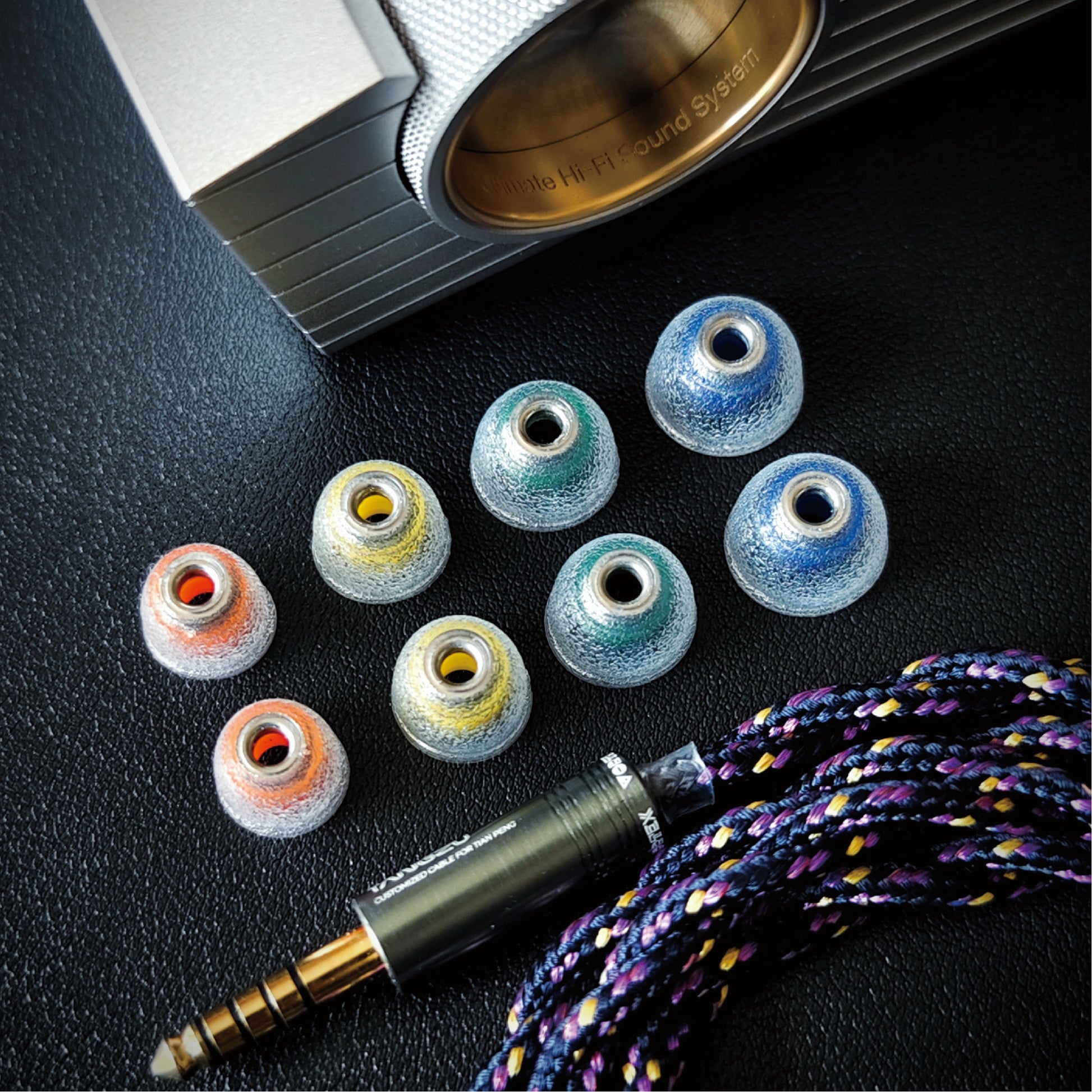 The Vortex customized high-end headphone cable is used to provide excellent audio performance and durability. The wire material uses braided rope, which is more durable and convenient to bend and store. The blue-purple color scheme echoes the headphone panel, which is full of visual impact.
